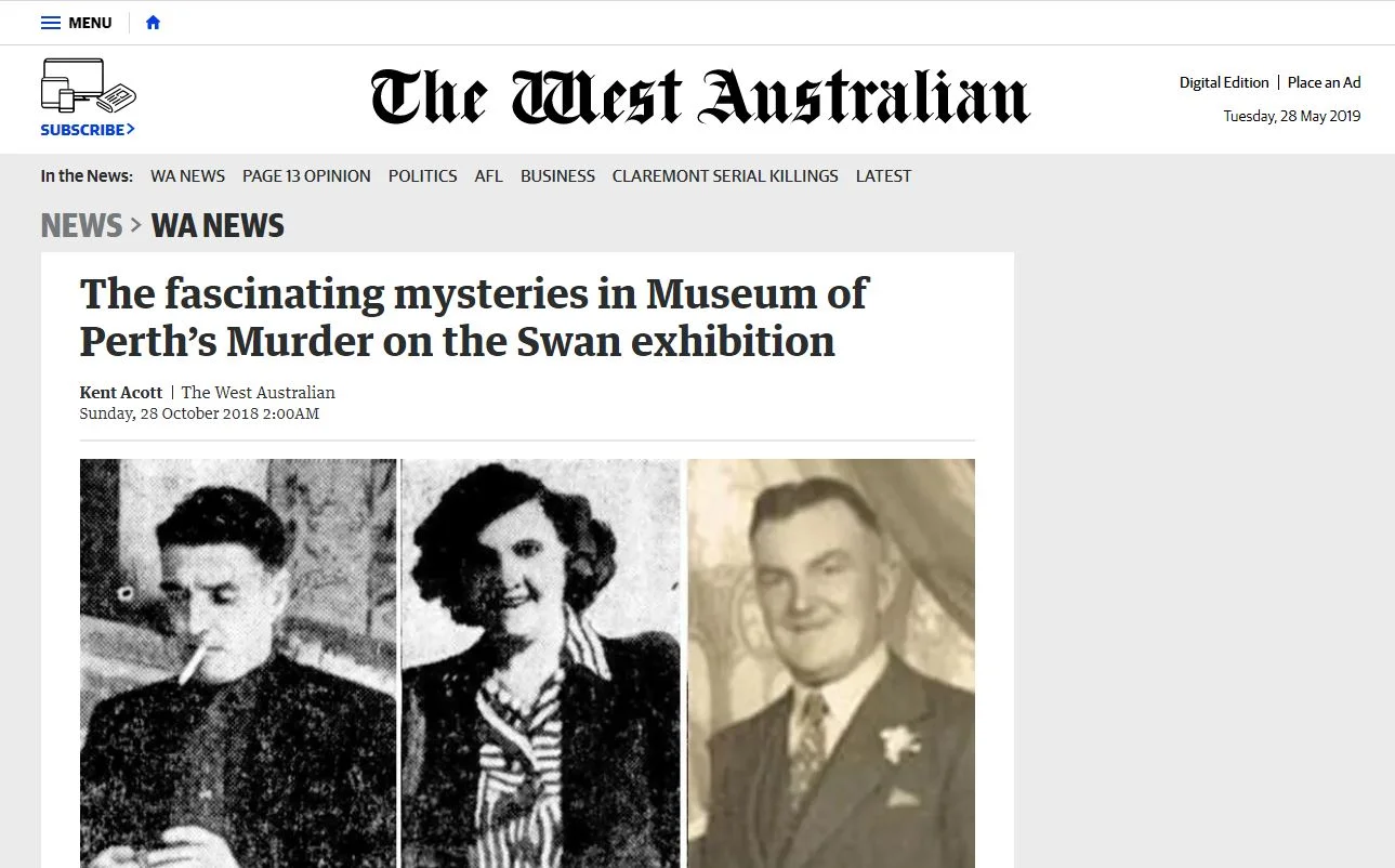 The fascinating mysteries in Museum of Perth’s Murder on the Swan exhibition - The West Australian,October 28, 2018